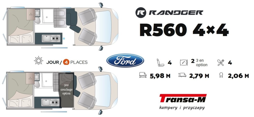 KAMPER RANDGER R560 4X4 TRANSIT 165 KM NOWY! MODEL 2026! GRIS MAGNETIC