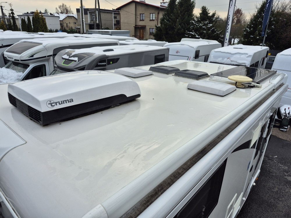 - Nadwozie wykonane z polyestru (dach oraz boczne ściany). System GRP/GFK - użycie żywicy z włóknem szklanym zapewnia większą odporność na gradobicie (w porównaniu do blachy aluminiowej). Technologia tego typu umożliwia również łatwiejsze naprawienie poszycia w wyniku wszelkiego rodzaju uszkodzeń.