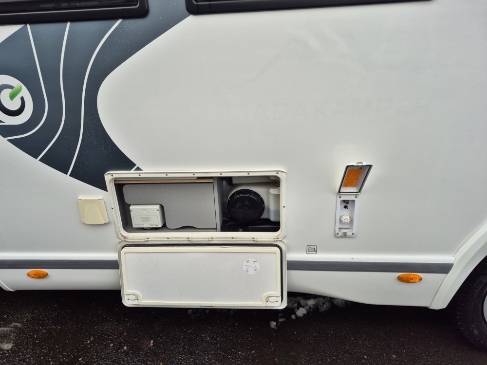 - TECHNIBOX - zabudowa wyposażona w boczną klapę serwisową gdzie znajdują się wszystkie najważniejsze elementy obsługi - skrzynka z bezpiecznikami, zawory spustowe, wlew czystej wody.