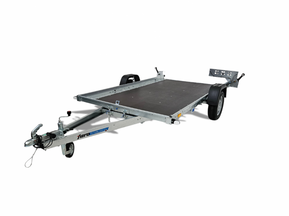 FARO VIARUS to lekka platforma z uchylnym dyszlem, idealna do transportu takich pojazdów jak motocykle czy quady.