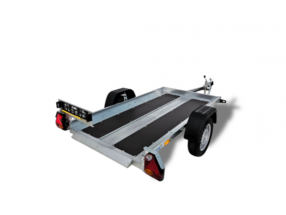 Idealna do transportu takich pojazdów jak motocykla czy quada. Jej prosta konstrukcja i wyważenie pozwala na bezproblemowy załadunek oraz rozładunek, przyczepa dodatkowo wyposażona jest w rynnę ułatwiającą wyśrodkowanie i zamocowanie pojazdów jednośladowych. Do wykonania przyczepy zastosowano wytrzymałościowej blachę, której grubość powłoki cynku wynosi 275 g/m2 (klasa A). Materiał ten odznacza się bardzo dobrą odpornością na korozję i utlenianie, łączy wygląd z wytrzymałością stali. Konstrukcja przyczepy jest nitowano-skręcana, co sprawia, że przyczepa dużo lepiej reaguje na naprężenia występujące podczas użytkowania oraz znacznie ułatwia wymianę elementów uszkodzonych podczas eksploatacji. Zawieszenie przyczepy stanowi oś skrętna z łożyskami kompaktowymi (łożysko kulkowe skośne dwurzędowe). Zaprojektowane do dużych przebiegów, uszczelnione i nasmarowane nie wymagają jakiejkolwiek regulacji i konserwacji. Podwójne uszczelnienie chroni przed dostaniem się zabrudzeń i wody do wnętrza łożyska. Podłogę przyczepy stanowi wodoodporna i antypoślizgowa sklejka o grubości 12mm wykonana przez Polskiego producenta.