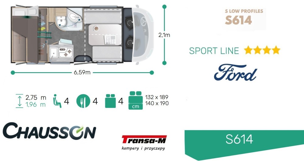 Seria S to połączenie zalet półintegry oraz Vana. Kompaktowe wymiary to przewaga nad standardowymi zabudowami - szerokość to 2,10 m! W limitowanej edycji SPORT LINE edycja S zyskuje wyjątkowy design oraz dodatkowe wyposażenie!