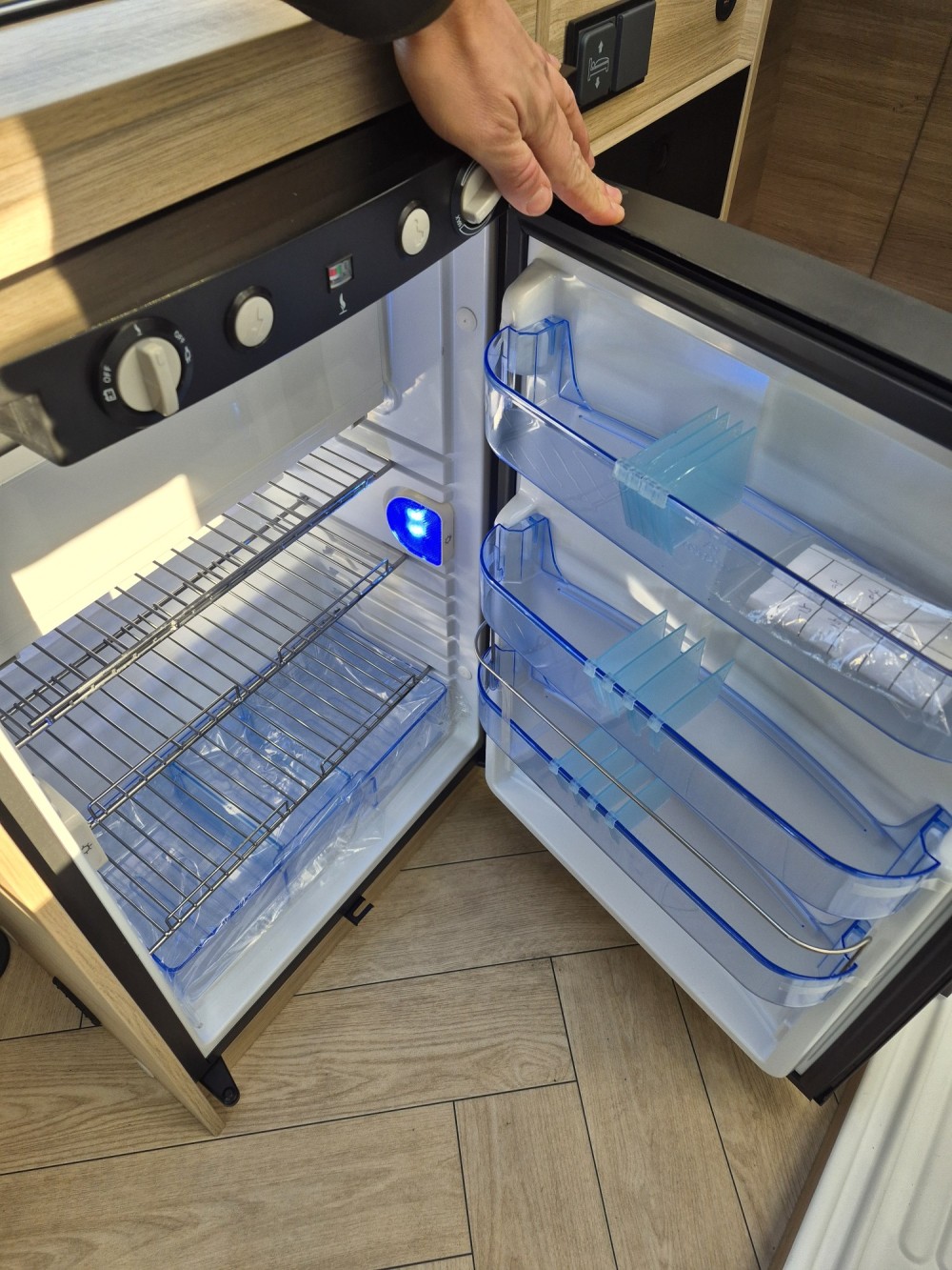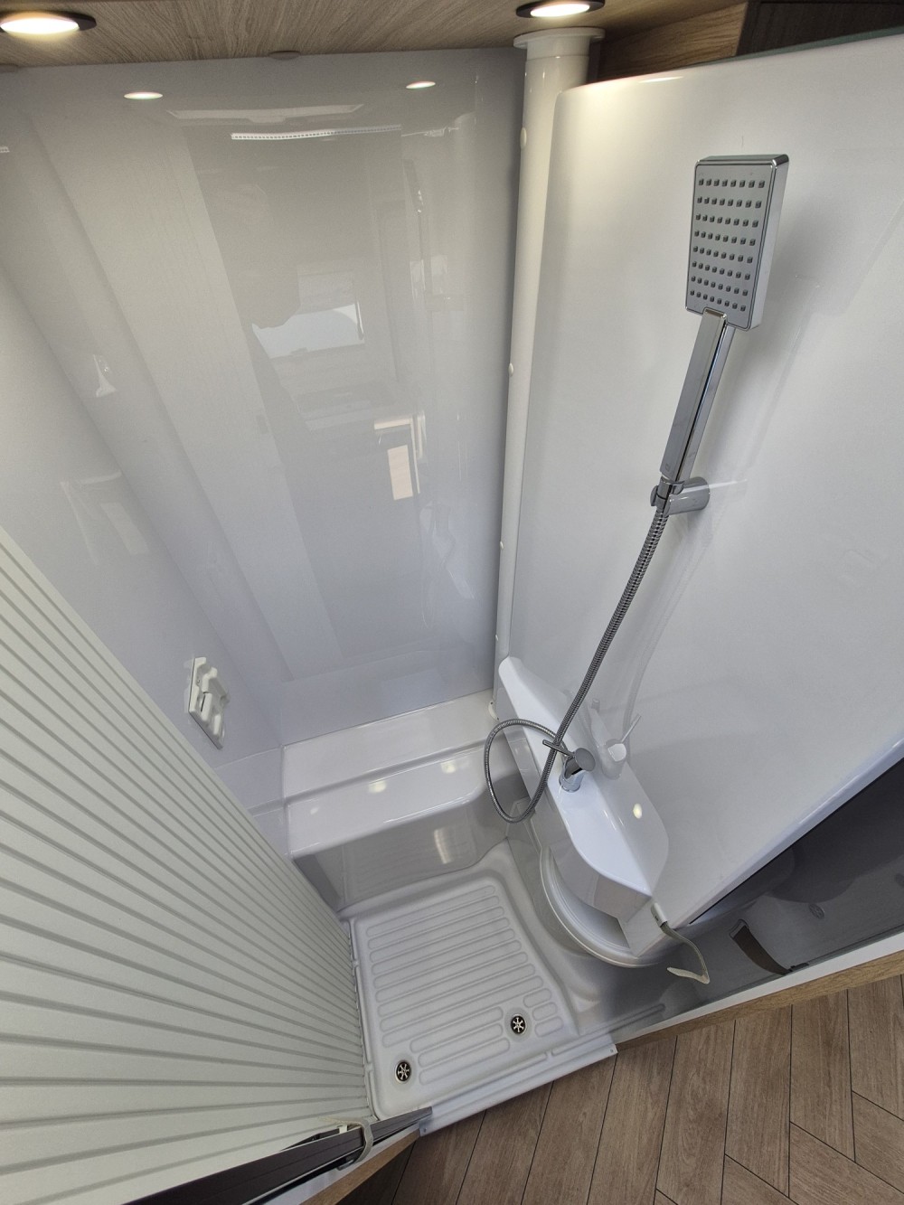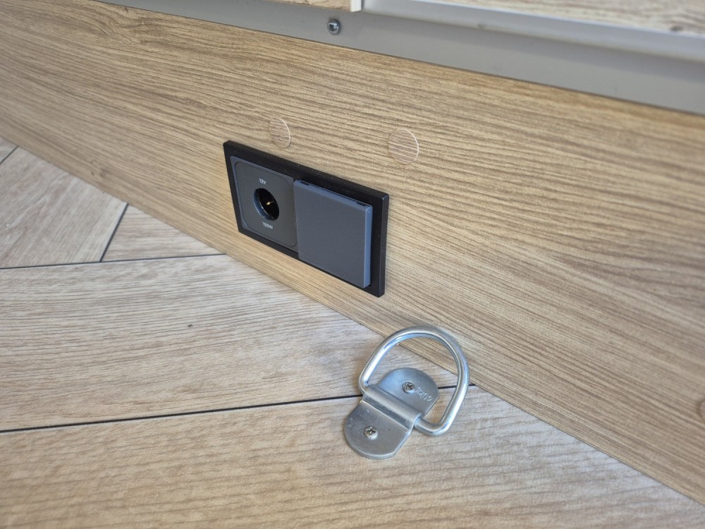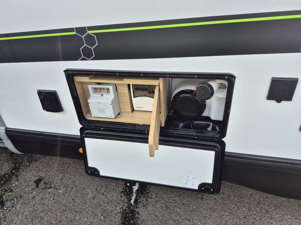 - TECHNIBOX - zabudowa wyposażona w boczną klapę serwisową gdzie znajdują się wszystkie najważniejsze elementy obsługi - skrzynka z bezpiecznikami, zawory spustowe, wlew czystej wody.