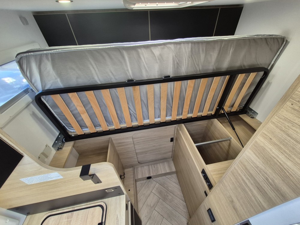 Nowość sezonu 2026! Kompaktowy model serii S posiadająca łóżko opuszczane spod sufitu. Idealny dla 4-osobowej rodziny!