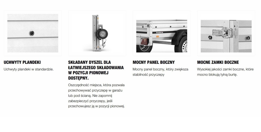 - Mocny panel boczny, który zwiększa stabilność przyczepy